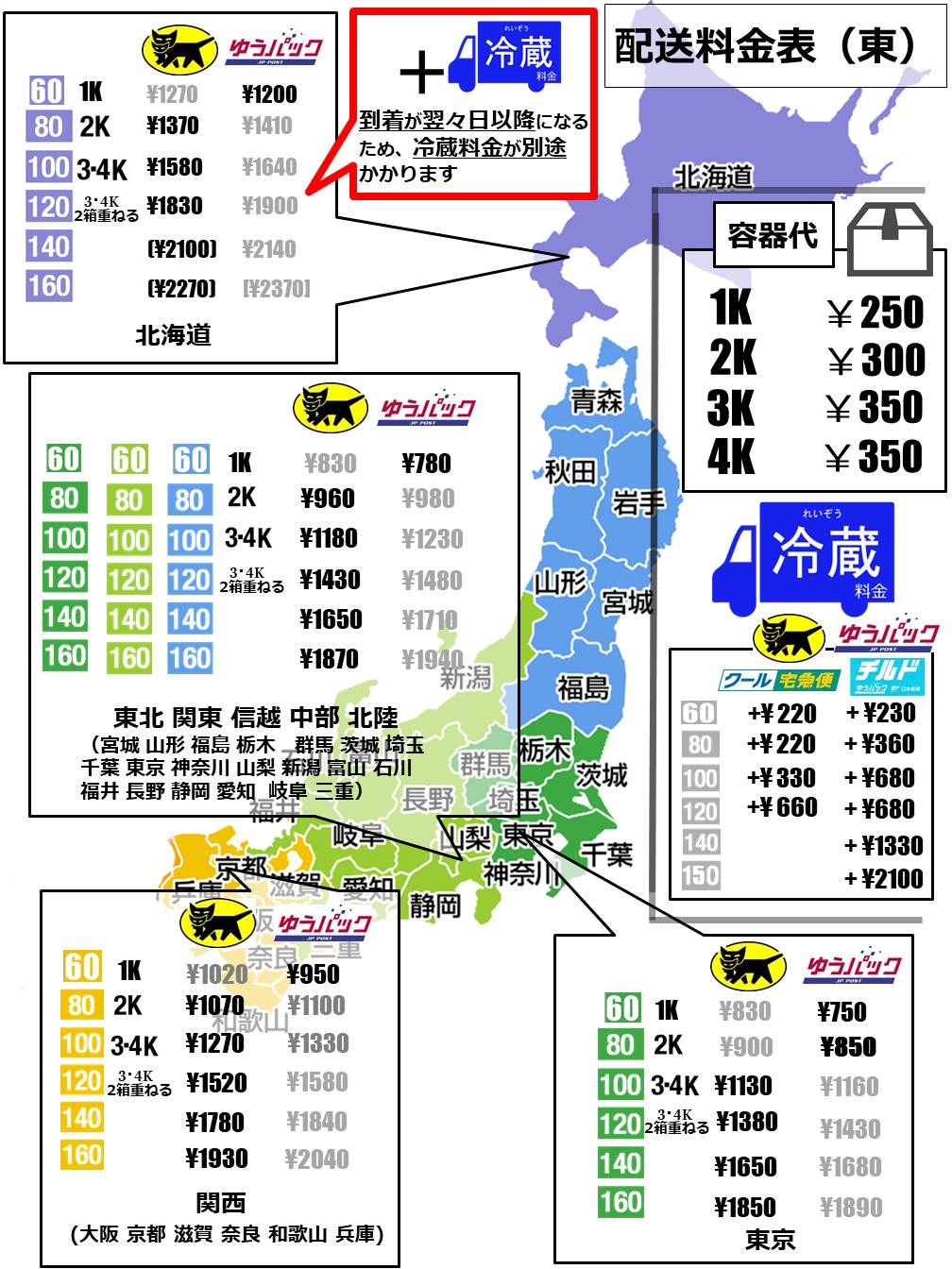 2022年の配送料金は下記のとおりです