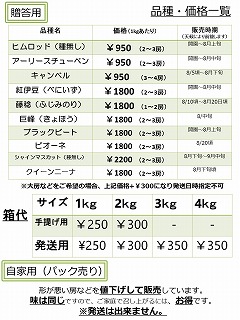 手提げ用の箱は1kg、2kgのみです。地方発送用の箱は2・3・4kgの3種類です。